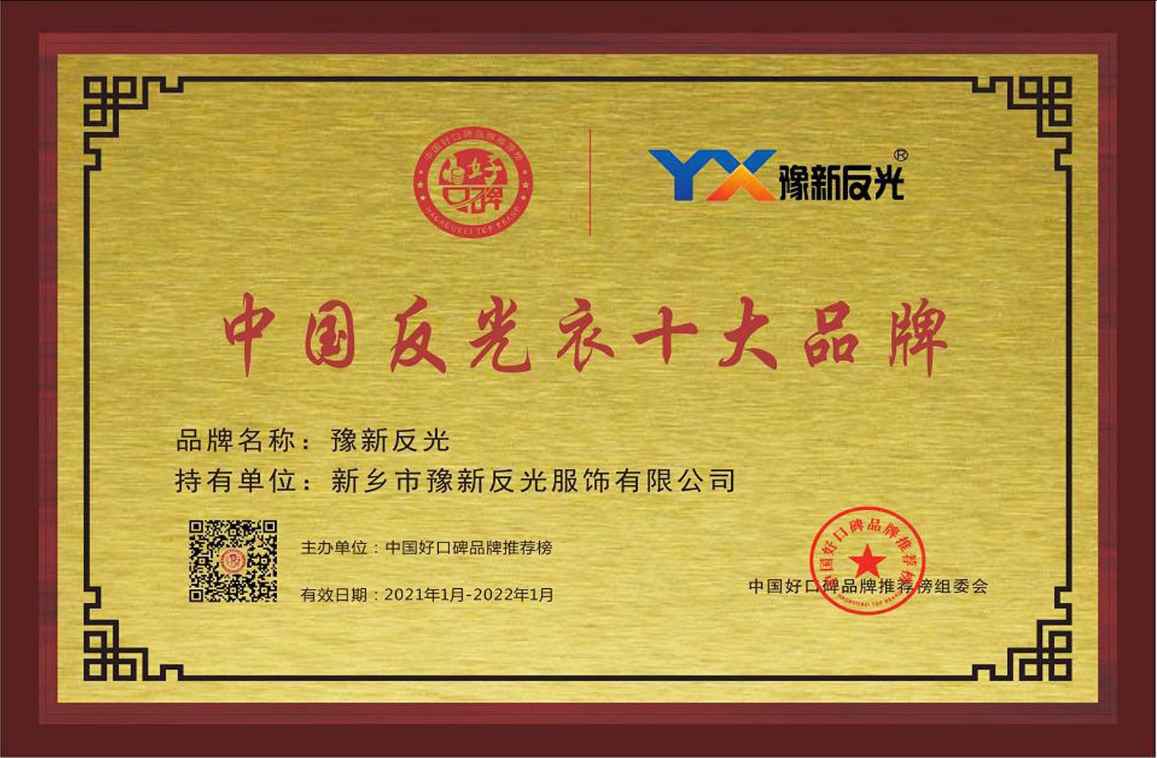 中國反光衣十大品牌獎杯 查看詳情>>